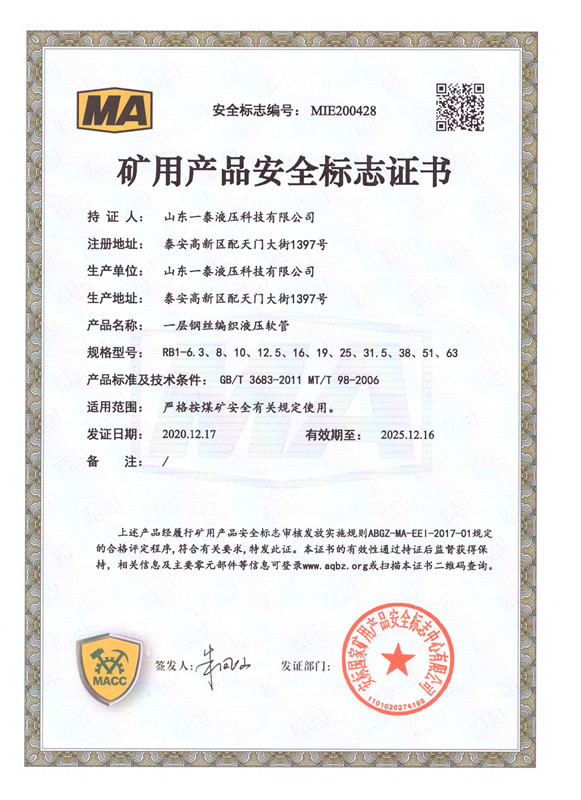 山東一泰液壓科技有限公司,坐落于山東省泰安市國家高新技術產業開發(fā)區配天門大街1397號,總占地面積6萬6千多平方米,總建筑面積4萬多平方米。公司注冊資金7500萬元,資產值3億元。公司始終專注于超高壓石油鉆探軟管、柔性節(jié)流壓井軟管、井控高壓耐火軟管總成、高端機械軟管、以及礦用液壓管體等配套產品的研發(fā)和生產。產品廣泛用于陸地和海洋石油鉆井、勘探、開采、輸送等領域;同時還為軍用系列、大型船舶系列提供了優(yōu)質產品的供應保障和信任服務。